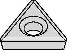 Coated carbide. CVD — TiC-TiCN-TiN. Tri-phase coating on a hard, low binder content, fine-grained grade. High-speed, general-purpose grade for all kinds of steel. Gold in color.